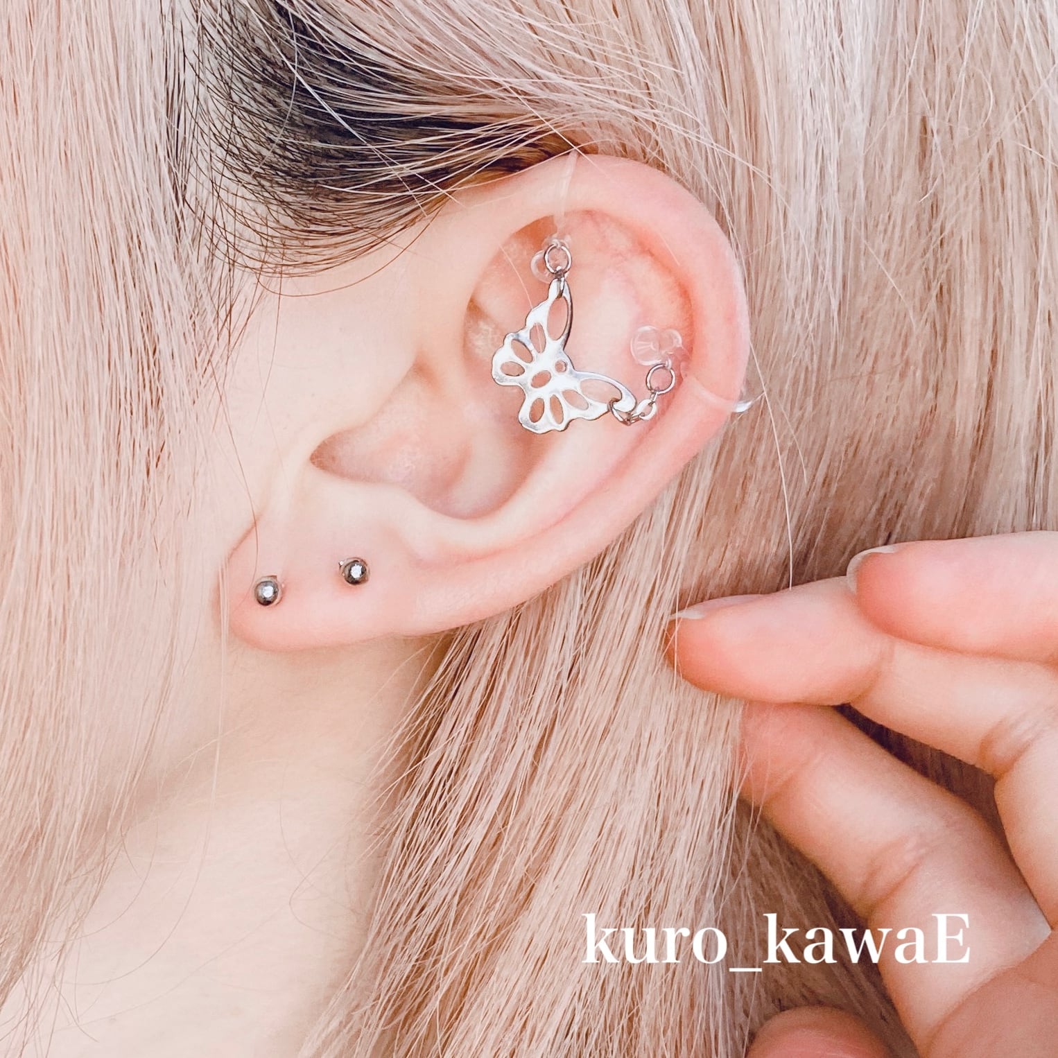 【 蝶のフェイクインダストリアル 】 地雷系 量産 軟骨 ピアス メンズ イヤーカフ イヤリング ゴシック 地雷 メンヘラ 病みかわ 病みかわいい ゴスロリ kuro-kawae kurokawae